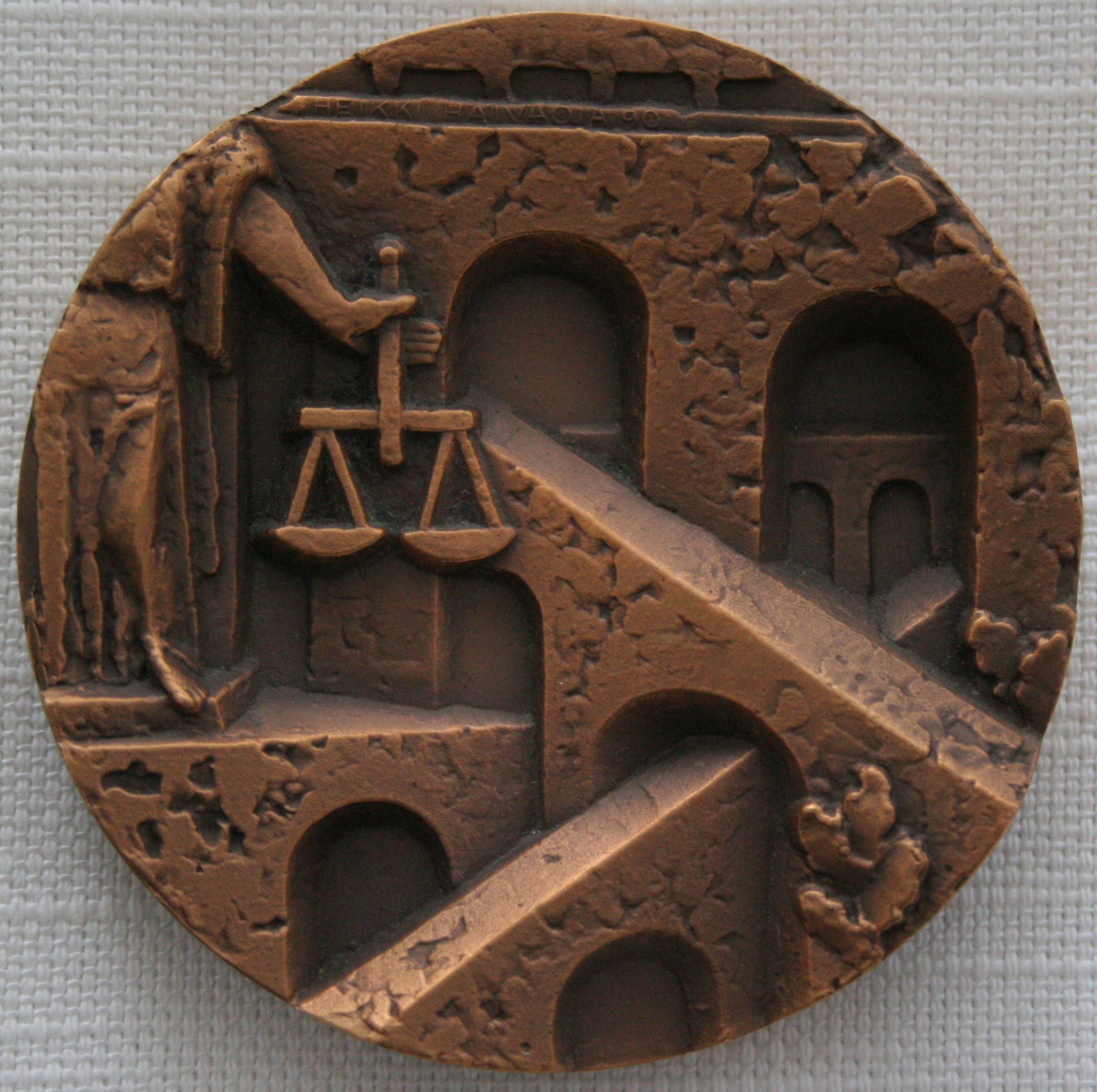 Mitali on taiteilija Heikki Häiväojan käsialaa ja lyöty marraskuussa 1990.